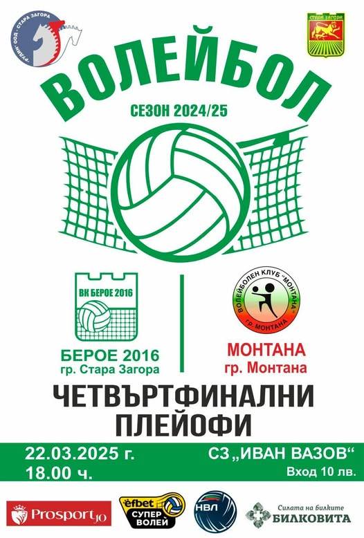 Любителите на спорта са добре дошли в събота, 22 март, в зала „Иван Вазов“, за да наблюдават двубоя между двата волейболни отбора. Началото е от 18.00 часа.