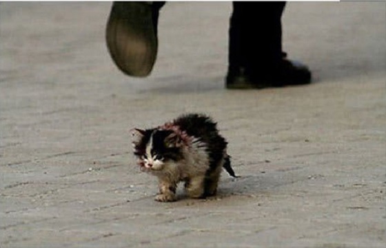 Грозньо винаги имаше една и съща реакция. Ако го напръскаш с маркуча, ще стои и ще прогизне, докато не се откажеш и си тръгнеш. Ако хвърляш неща по него, ще сгуши кльощавото си тяло в краката си в знак на прошка. Всеки път, когато видеше деца, тичаше  и мяукаше обезумяло и удряше главата си в ръцете им, молейки за тяхната обич. Ако някога го вдигнеш, веднага ще започне да суче от ризата ти, обеците ти или каквото намери..
