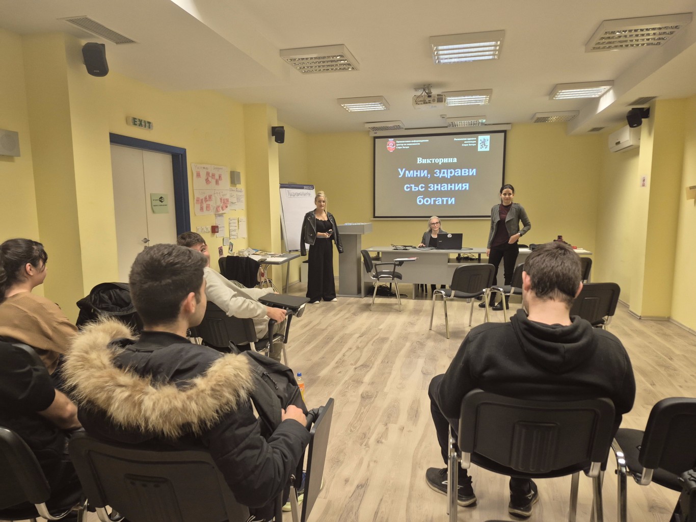 Викторината имаше състезателен характер и се проведе под формата на игра, в която участваха два отбора и отговаряха последователно на въпроси, свързани със зависимостите, както и рисковете и последствията при употребата на психоактивни вещества (ПАВ).