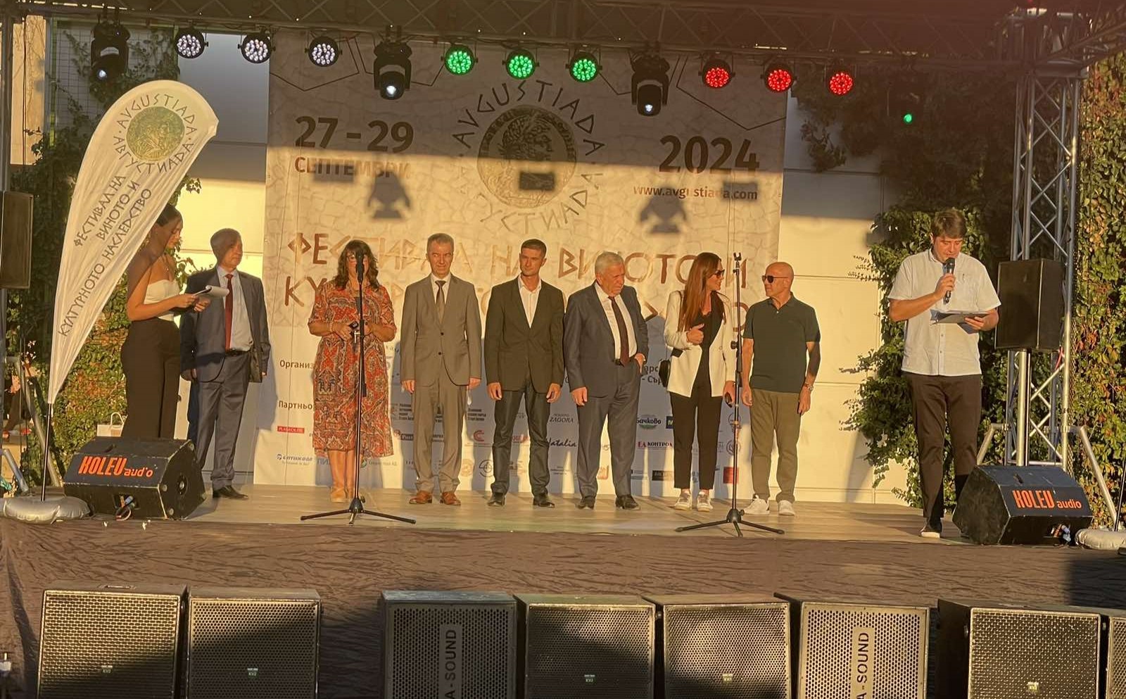 Официален старт на фестивала отбеляза секретарят на Община Стара Загора Николай Диков като поздрави от името на кмета Живко Тодоров организаторите, изложителите и гостите. „Една много стара история разказва за човек, който изпаднал в много трудна финансова ситуация. За щастие имал две колекции – от картини и от вино. Наложило му се да продаде едната – тази с картините. Когато го попитали защо не е продал виното, той отговорил: „Човек може да живее без изкуство, но не и без култура“. Приветствам ви с „добре дошли“ на фестивала на виното и културното наследство АВГУСТИАДА“, тържествено обяви той. „От името на г-н Тодоров поздравявам организаторите, изложителите и гостите на фестивала. За 12 години Вие утвърдихте АВГУСТИАДА като регионален бранд с национално значение. Предстоят ни два наситени със събития дни и обилно поляти с разкошни вина. Пожелавам успех на фестивала и нека изберем най-очарователната и умна Царица „Августиада“ тази вечер“, допълни още г-н Диков.