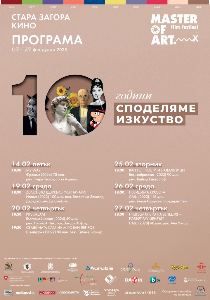 Стара Загора от днес е домакин на престижния фестивал „Master of Art“, който ще предложи на зрителите седем вдъхновяващи документални филма за изкуството. Веднага след края на „Менар Филм Фест“, градът затвърждава позицията си като културен център, който привлича ценителите на киноизкуството.