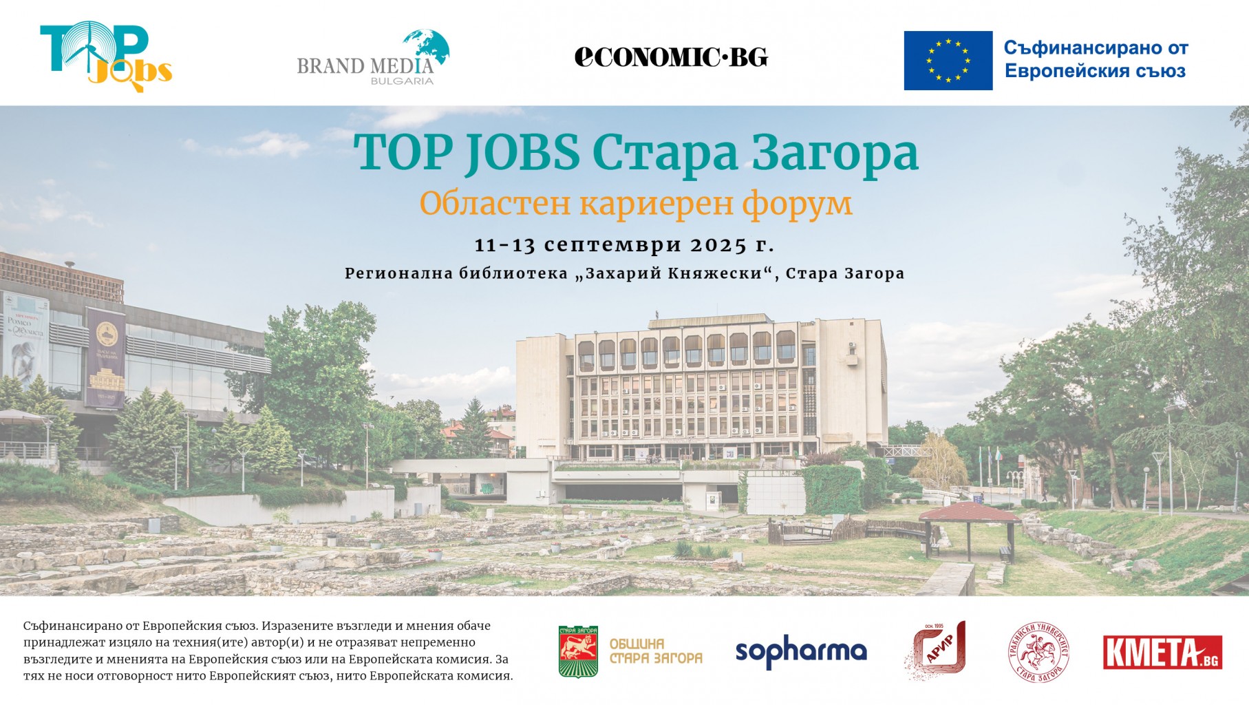 За три дни през втората седмица на септември Стара Загора се преобразява в регионален кариерен център. Областният форум TOP JOBS – Стара Загора ще посредничи между значителен брой млади и опитни специалисти, търсещи нова професионална реализация и работодателите от устойчивите индустрии на бъдещето. Своеобразната трудова борса ще се проведе от 11-и до 13-и септември 2025 г. в Регионалната библиотека „Захарий Княжески“.