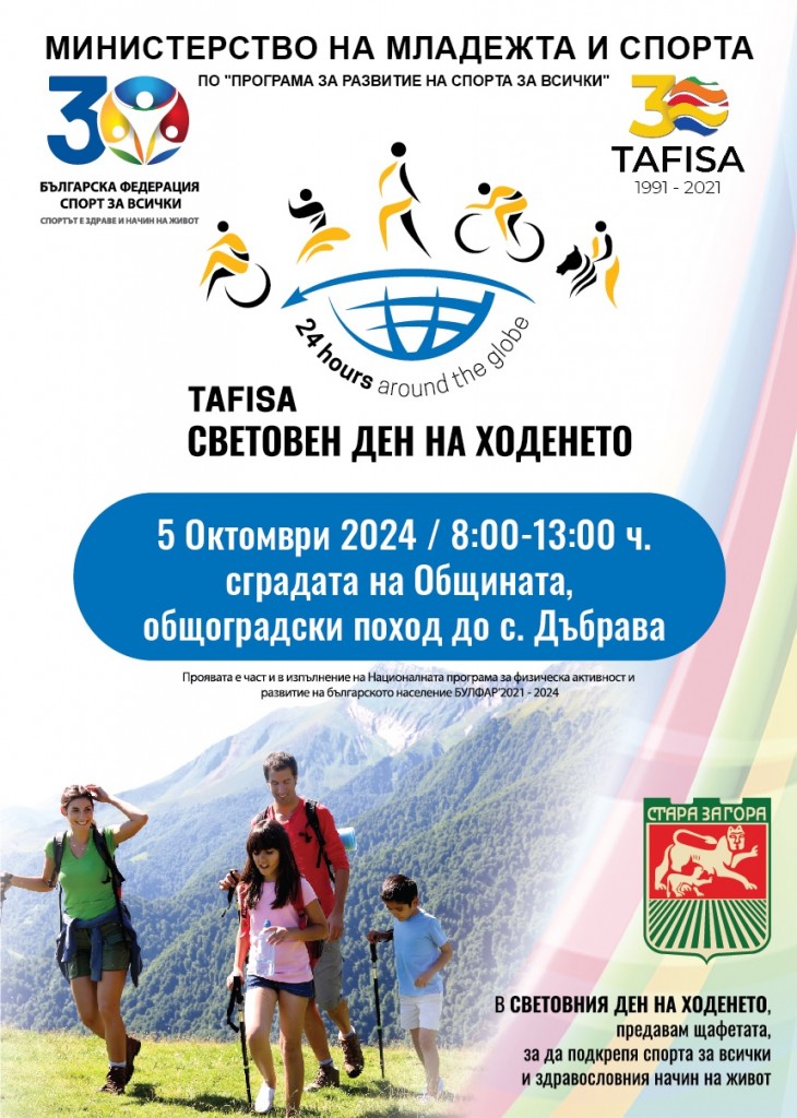 Събитието е част от 32-рата национална проява Световен ден на ходенето, организирана от Българска федерация “Спорт за всички“ с финансовата подкрепа на Министерството на младежта и спорта.