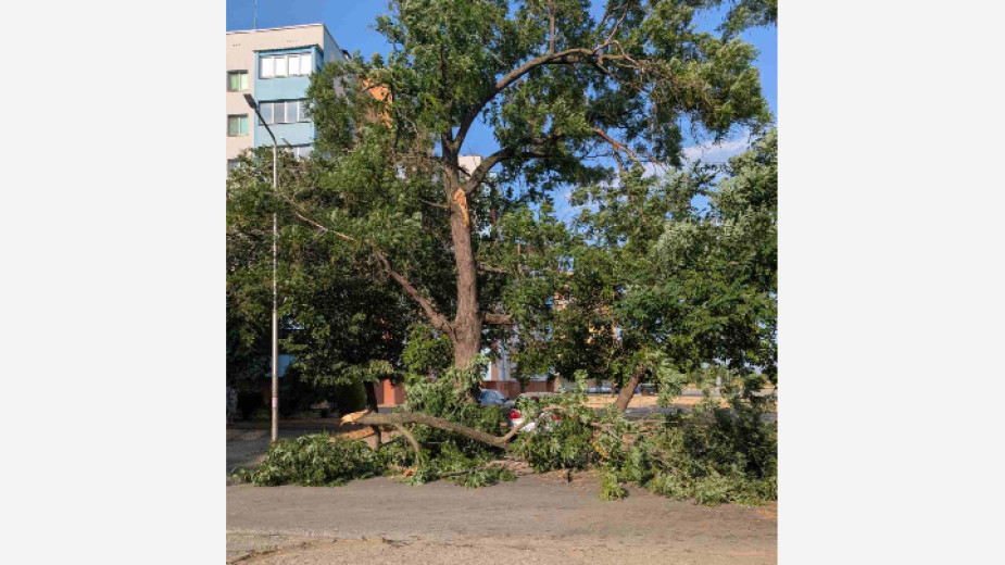 Заради силния вятър в Стара Загора вече има няколко паднали дървета и клони. От паднало дърво е препречен пътят между селата Преславен и Могила.