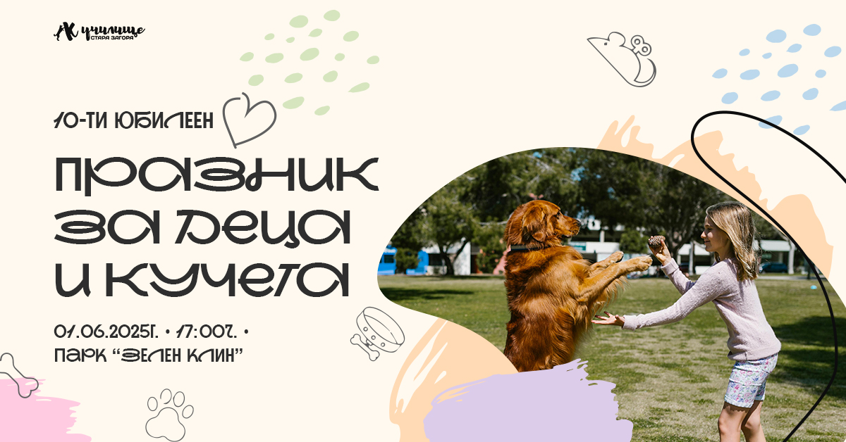 Десетото юбилейно издание на „Празник за деца и кучета“ ще се проведе на 1 юни 2025 г., неделя, от 17.00 часа. Мястото е както обичайно – полянката в парк „Зелен клин“, обявиха организаторите от „Кучилище Стара Загора“.